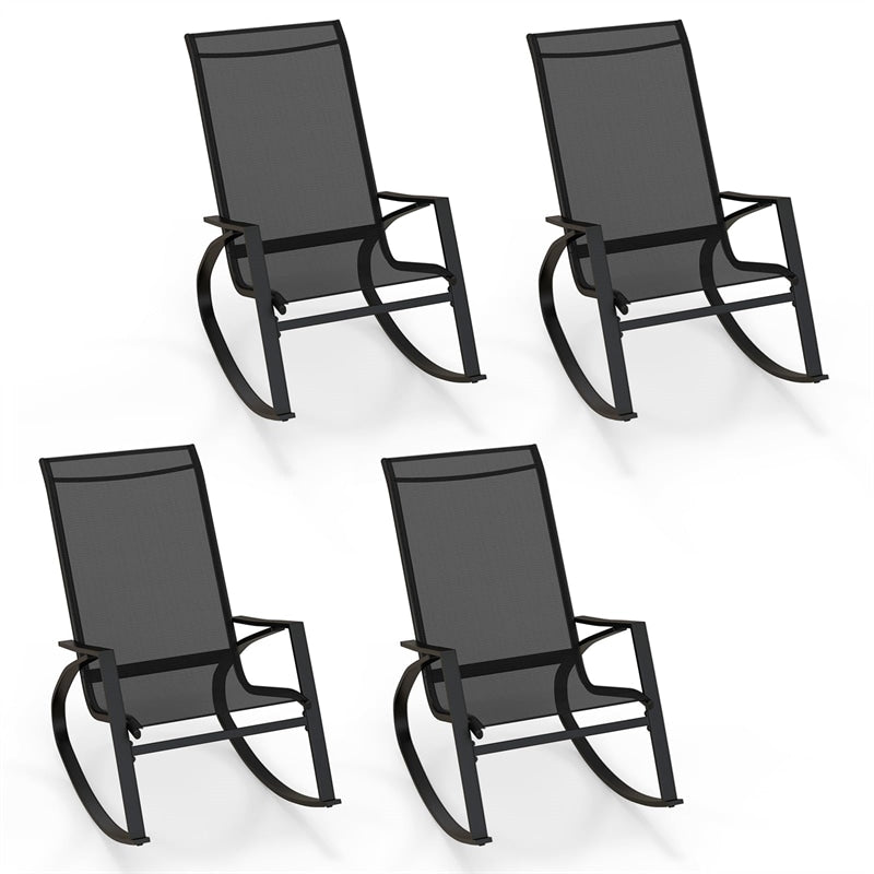 Outdoor Rocking Chairs Set of 4, Metal Frame Sling Fabric Patio Rockers with Ergonomic Backrest & Seat, Safe Stoppers for Backyard, Front Porch