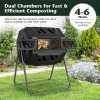 42-Gallon Dual Chamber Compost Tumbler, Rotating Outdoor Composter with Sliding Doors & Gloves, Metal Frame Compost Barrel for Garden Yard