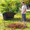 - Practical Dual Chamber Design: This outdoor compost bin barrel features 2 separate rotating chambers offering great convenience in batch composting. One side decomposes organic materials and stacks fertilizers while the other side facilitates you to add fresh organic materials for keeping an uninterrupted mix and producing rich and healthy compost.