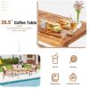 4 PCS Rattan Patio Chat Set Acacia Wood Coffee Table Chair Set with Seat Back Cushions