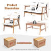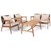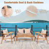 4 PCS Patio Rattan Chat Set Acacia Wood Frame Chair with Cushions & Wooden Coffee Table