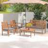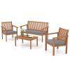4 Piece Patio Wood Furniture Set Outdoor Acacia Wood Sofa Set with Loveseat, 2 Cushioned Chairs & Coffee Table for Porch Yard Balcony