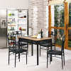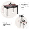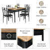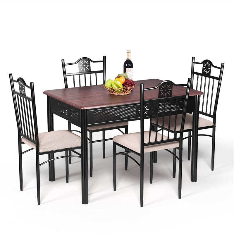 - Wooden Look Tabletop: The wood-look top is a kind of modern decor appearing in what you want to put. The dark brown wood-looking top is what makes your decoration stand out. Transform your home decor into something elegant with this 5 pcs dining table chair set. Furthermore, the same style of tables and chairs could bring you a harmonious home atmosphere.