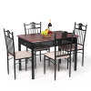 5 Piece Metal Dining Set with 4 Padded Chairs & Wood Top Dining Table, Vintage Kitchen Breakfast Furniture Set for Home Dining Room