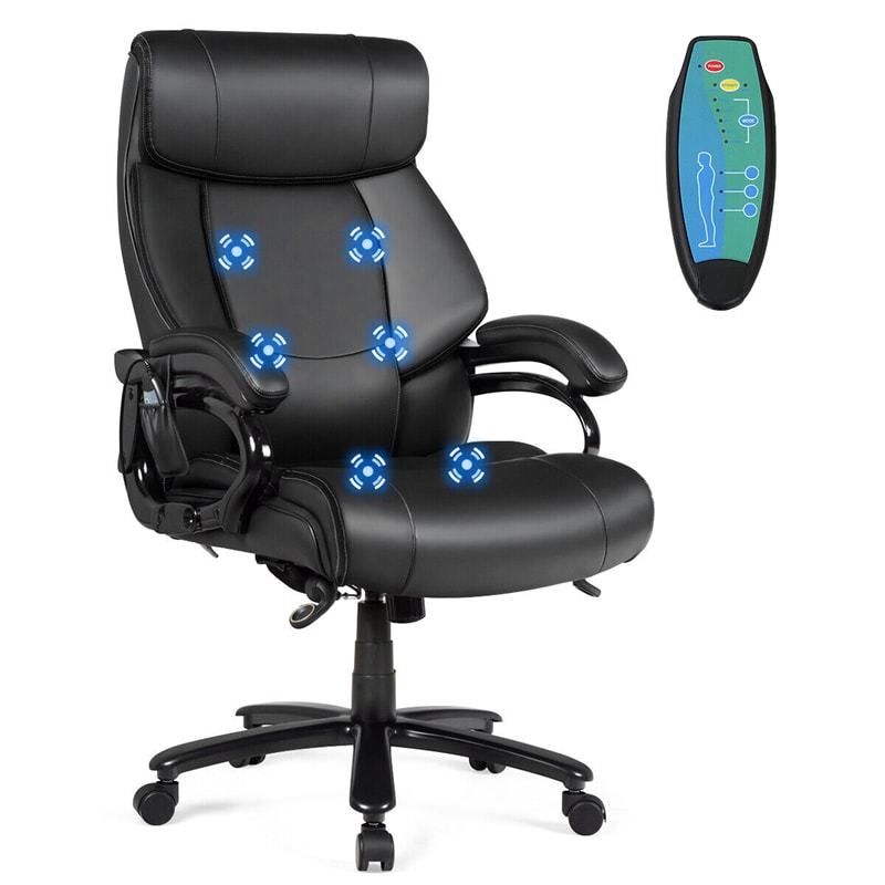 500lbs Big & Tall Office Chair, Ergonomic High Back Leather Massage Executive Chair with Remote, Padded Armrests, Height Adjustable for Heavy People