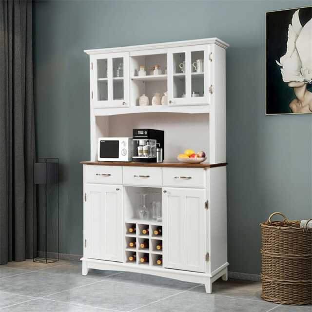 • Large Space with Adjustable Shelves: The buffet cabinet with hutch offers ample space and keeps your room tidy with the top cabinet, 2 pull-out drawers, and a 2-door cabinet at the bottom. Besides, 3-position adjustable shelves allow you to store items of different sizes. appliances.