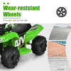 • Rechargeable Battery & Thickened Wheels: This kids' electric ride-on quad comes with a 6V 4Ah battery. In fully charged condition, it allows 40 mins of playtime. Additionally, it is equipped with 4 wear-resist PP wheels, which enables the electric ride-on ATV to run on different grounds, either indoors or outdoors, such as the wood floor, asphalt road, and more.