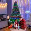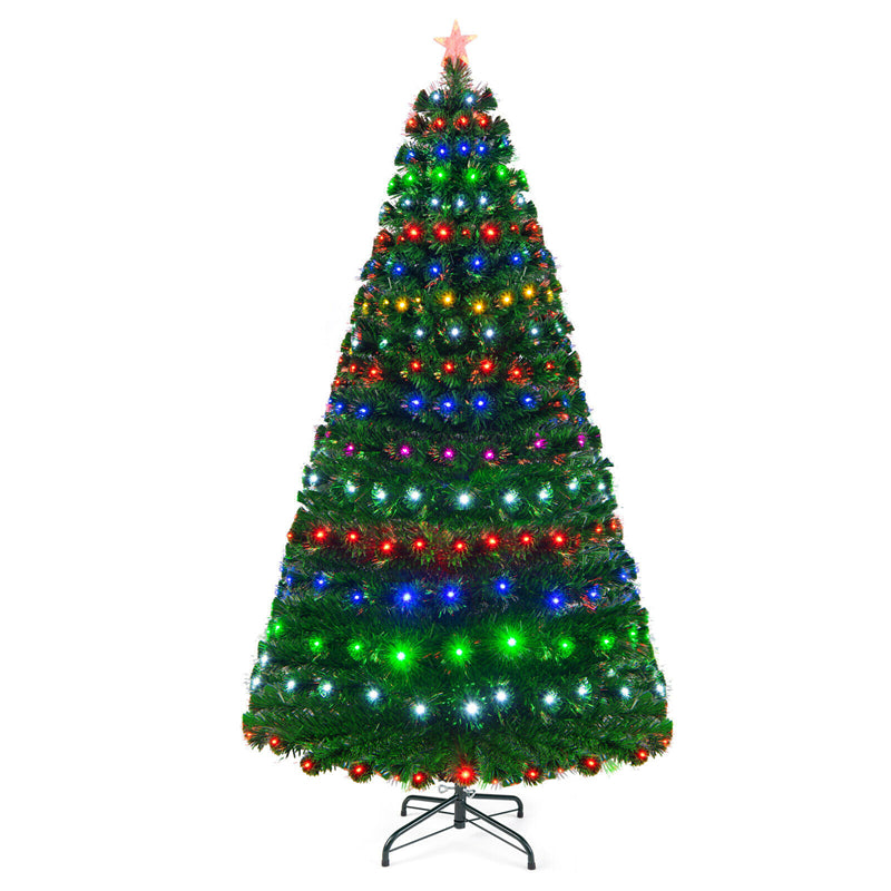 7FT Pre-Lit Fiber Optic Christmas Tree Full Artificial Xmas Tree with Colorful LED Lights, 8 Lighting Modes & Metal Stand