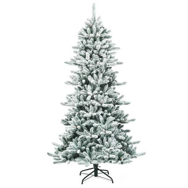9FT Unlit Snow Flocked Wrapped Artificial Christmas Tree with 1498 PVC Branch Tips