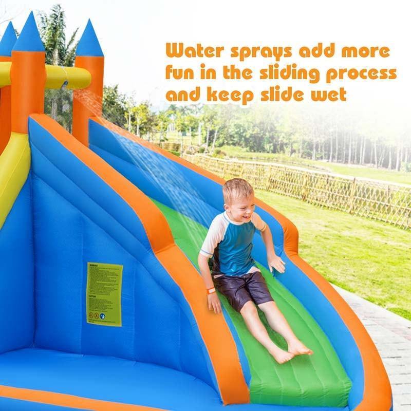 - Water Fun: Connect the hose to a tap, and use a suggested air blower, your kids will have endless full with this water slide. The pray hood is designed on the top side of the water slide to keep the sliding surface slippery continuously.