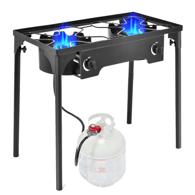 This is a sturdy triple camping stove cooker that can meet all your needs with high-performance stoves. The propane burner is made of cast iron and is designed with height adjusted to meet your different needs. What's more, the powder coating makes it waterproof and anti-rust, allowing quick use without a complex setup. The burner can boil water and cook your food whether you're tailgating at the football stadium or camping with the family. Other than that, the burner with detachable legs ensures its convenient transportation and storage. On holidays, you can invite your friends to have a party outdoors, make a great meal, and share a good time with this triple camping stove burner.