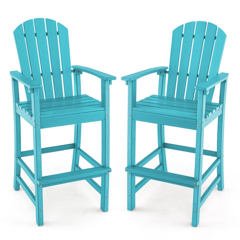 Outdoor HDPE Adirondack Bar Stools Set of 2, 30" Tall Adirondack Chairs with High Backrest & Footrest, 360LBS Capacity for Poolside, Patio