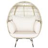Oversized Wicker Egg Chair, Indoor/Outdoor PE Rattan Basket Lounge Chair with 4 Cushions, Steel Frame, 450LBS Capacity for Patio, Backyard