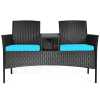 Modern Rattan 2-Seater Patio Furniture Set with Built-in Tempered Glass Table & Removable Cushions, Outdoor Furniture for Backyard, Garden