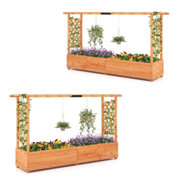Add a touch of elegant charm to your living space with our premium raised garden bed! Measuring 43.5" x 17.5" x 44.5" (L x W x H), our wooden raised garden bed with trellises features enough space for cultivating plants, growing climbing plants, or displaying various hanging flower baskets. Also, you can add some light strings or tulle on the side trellises or the top hanging roof, making it more charming on your patio. Meanwhile, the large planter box measures 31" x 14" x 7.5" (L x W x H), offering enough space for plants to breathe and grow deep. And you can detach the bottom base to grow deep-root plants. Apart from that, there are 4 drainage holes on the bottom, facilitating the drainage of excess water and keeping plants or roots breathable. What's more, the elevated planter is made of 100% natural fir wood, which is deformation-resistant, weather-resistant, and durable. Thus, this wooden raised garden bed would be an ideal choice for any indoor and outdoor gardening.
