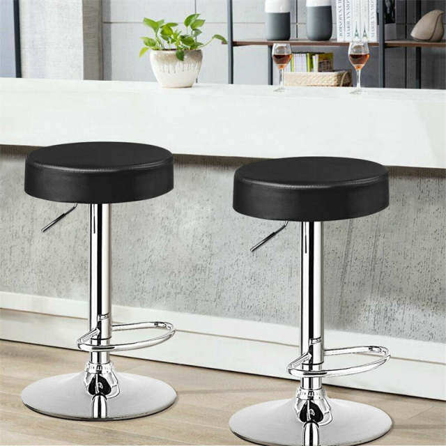 Set of 2 Swivel Adjustable PU Leather Backless Bar Stools